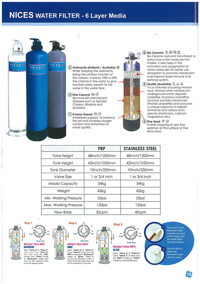 Research shows that water can deliver nutrients, keeps the body's temperature, promotes health but by drinking water is not enough. NICES Water Filtration System uses the latest filtration technology which includes many features that will filter suspended solids in the water, separates the water into small molecules for easier absorption and helps to remove waste from body. NICES Water Filtration System gives you clean and safe-to-consume water into your house, from cleaning to cooking. It gives you and your family a hygienic and healthy home to live.